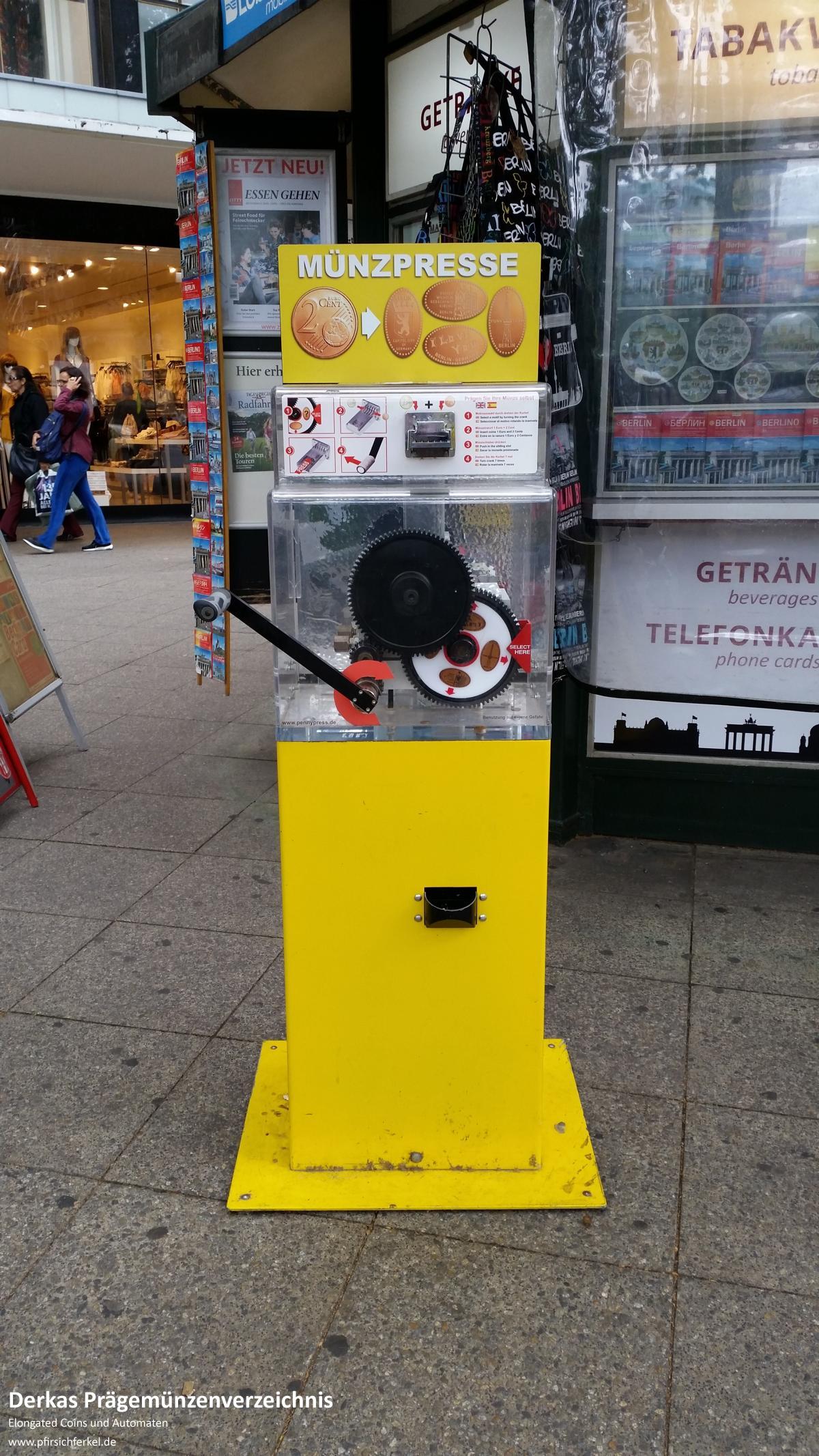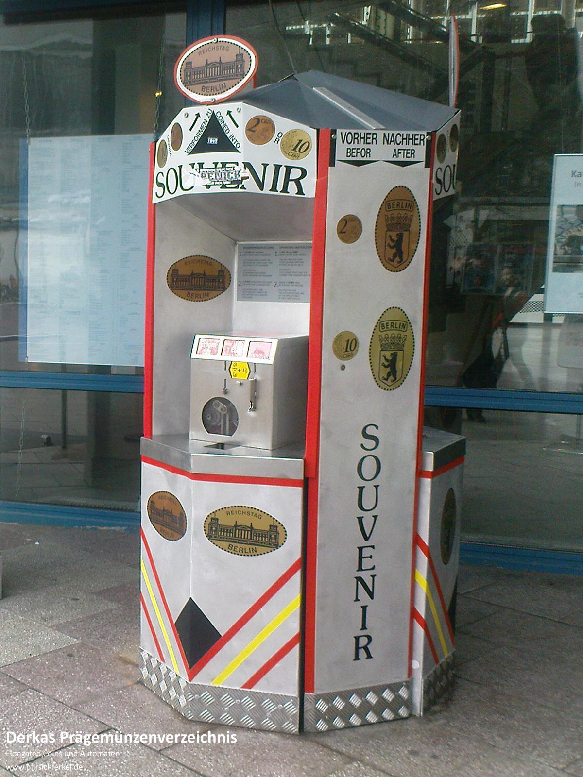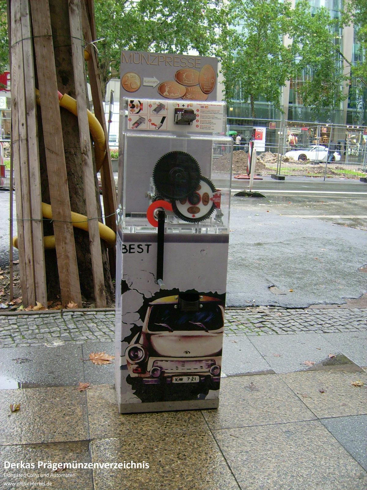 Dieser Automat besteht eigentlich aus drei Maschinen, die nebeneinander angeordnet sind. Es gibt beim Fernsehturm insgesamt zwei Automaten, die auf 6 Münzen insgesamt 8 unterschiedliche Motive (inkl. zwei Rückseitenmotive) prägen!
