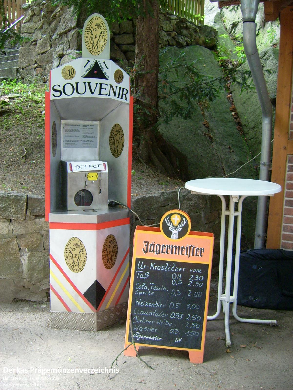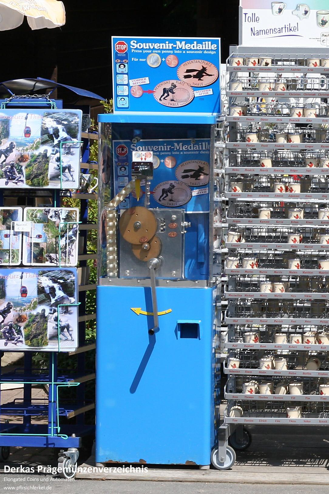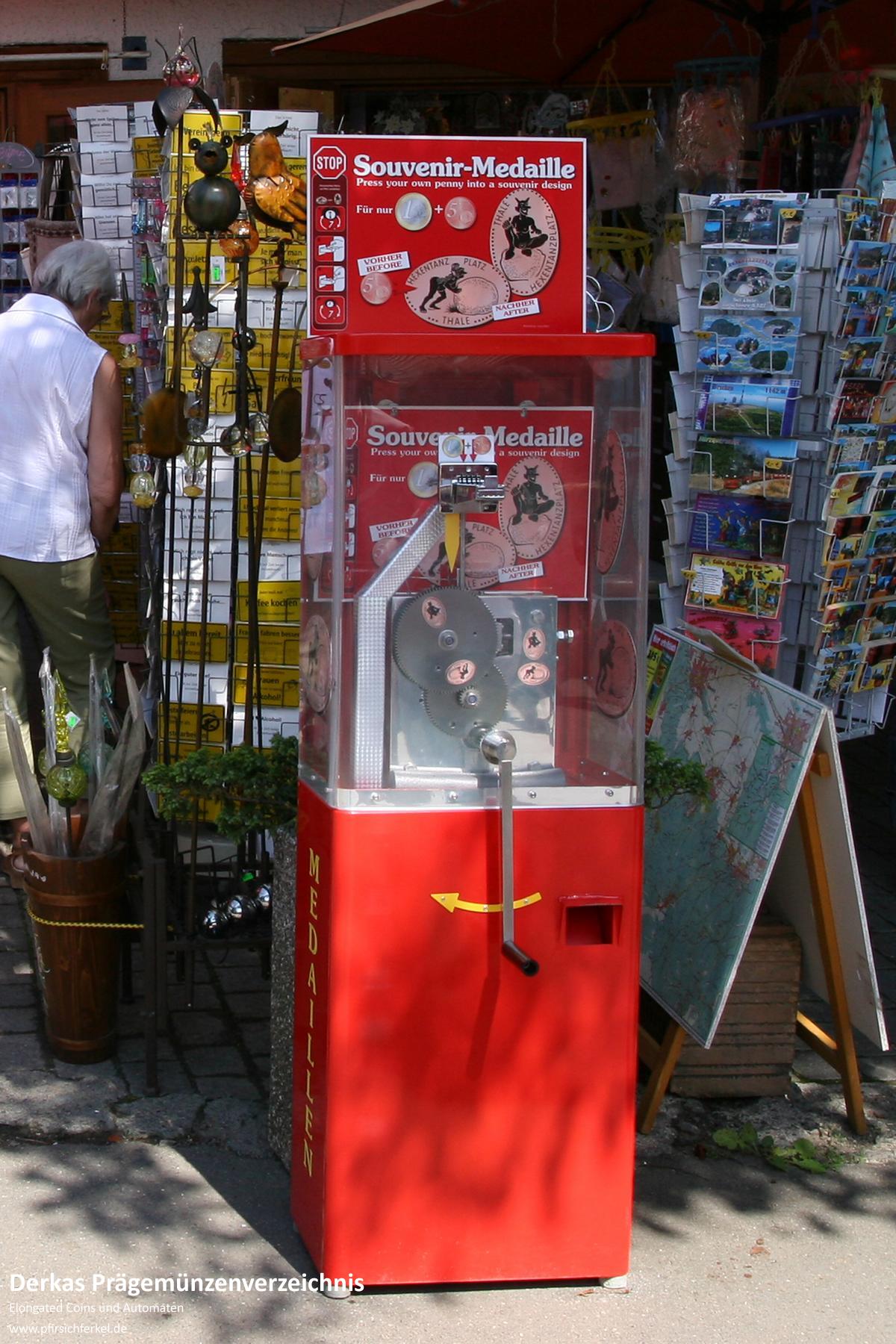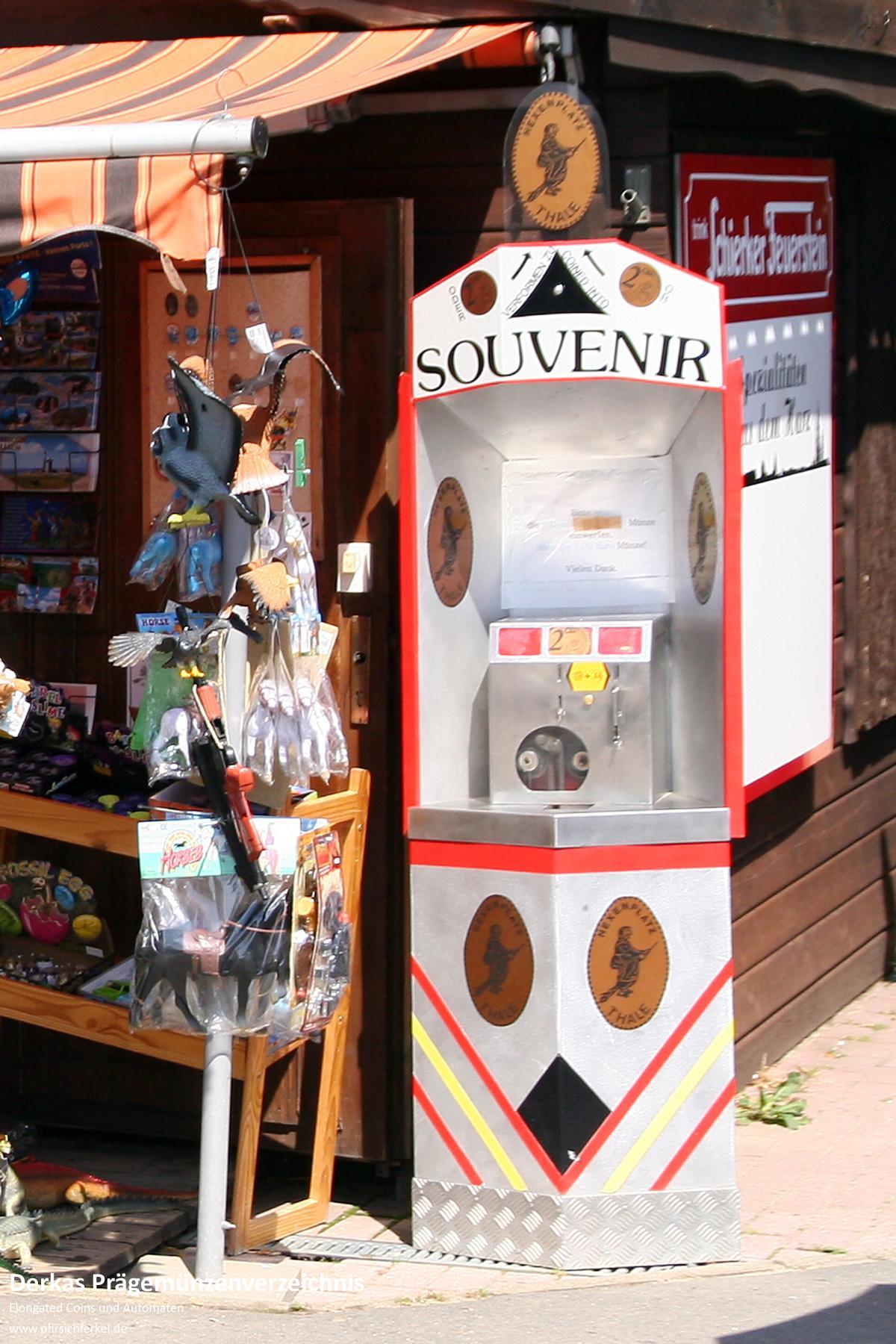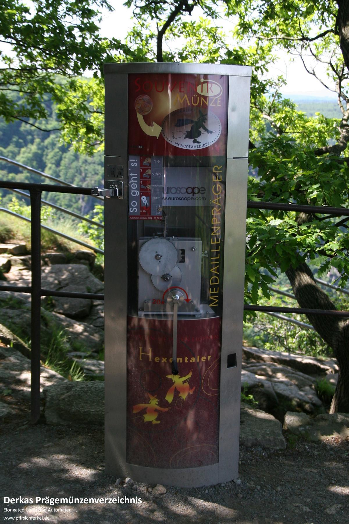 Das Motiv "Hexe mit Felsbrocken" wird ebenso von einem anderen Automaten auf dem Hexentanzplatz geprägt.